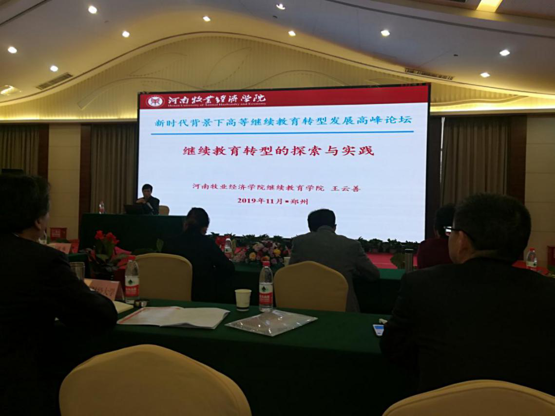为切实践行“不忘初心、牢记使命”主题教育,根据学院安排,11月8——9日,pg游戏电子模拟器副院长王云善带队参加了在郑州市举办的“新时代背景下高等继续教育转型发展高峰论坛”。会议由河南省继续教育学会主办,来自新疆财经大学、玉林师范学院、郑州大学、河南大学等省内外80多所高校的150多名代表参加了大会。