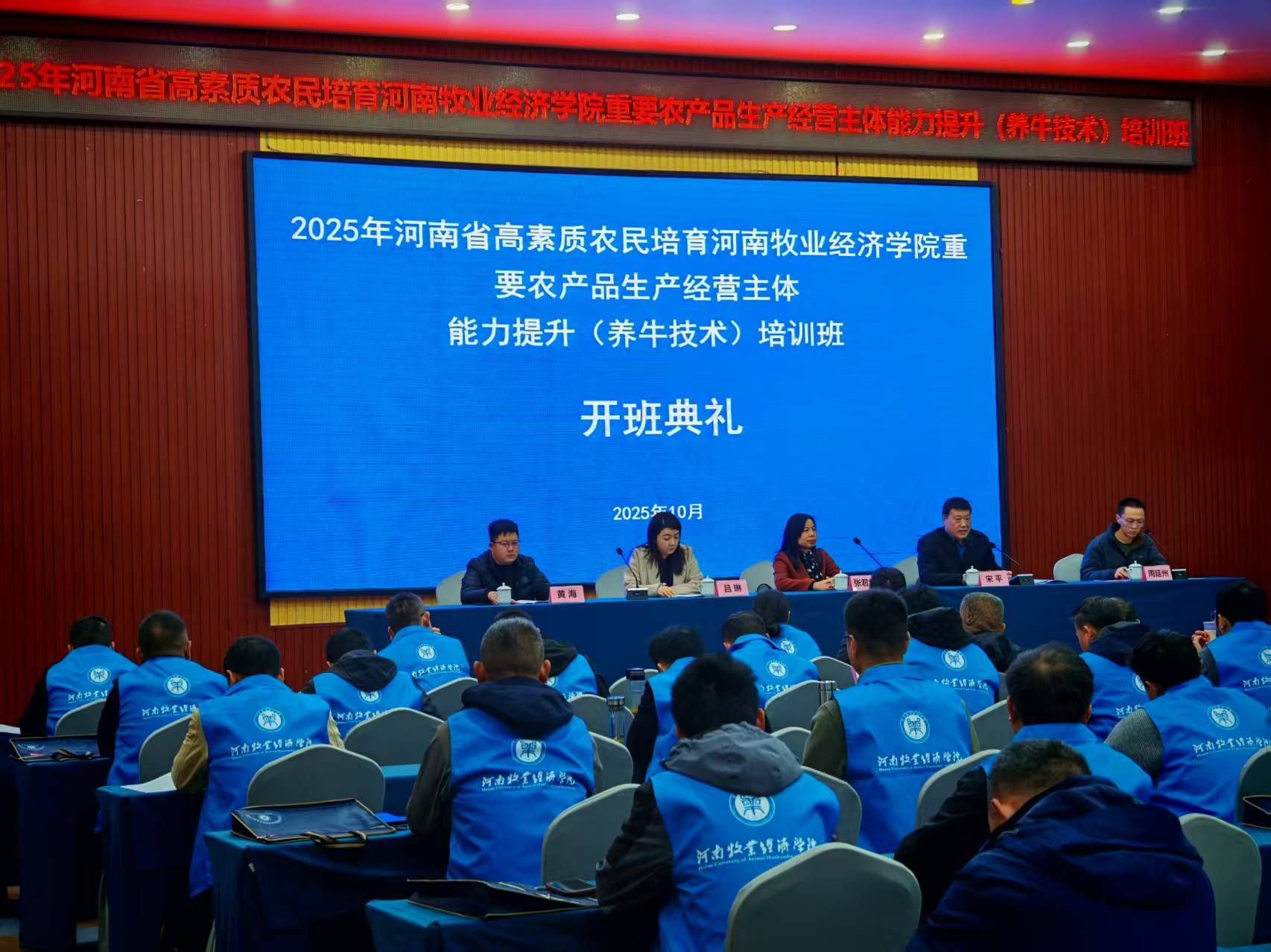 10月27日下午,由pg游戏官网承办的2025年高素质农民培育(养牛技术一期)培训班开班典礼在河南现代农业研究基地报告厅举行。pg游戏电子模拟器党总支书记张君华、院长宋平、副院长周延州等相关同志及接受培训的全体学员参加了开班典礼。开班典礼由pg游戏电子模拟器副院长周延州主持。