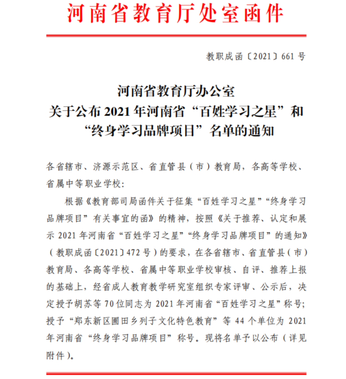 近日,省教育厅发布《河南省教育厅办公室关于公布2021年河南省“百姓学习之星”和“终身学习品牌项目”名单的通知》,由pg游戏电子模拟器牵头申报的高素质农民培训项目被授予2021年河南省“终身学习品牌项目”,这是pg游戏官网高质量推进高素质农民培育,助力乡村振兴战略实施的又一重大成果。