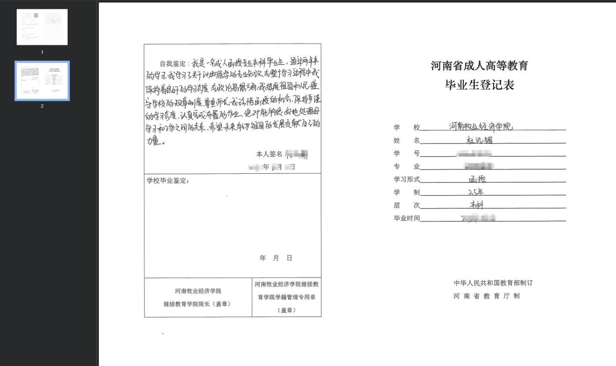 7、河南省成人高等教育毕业生登记表