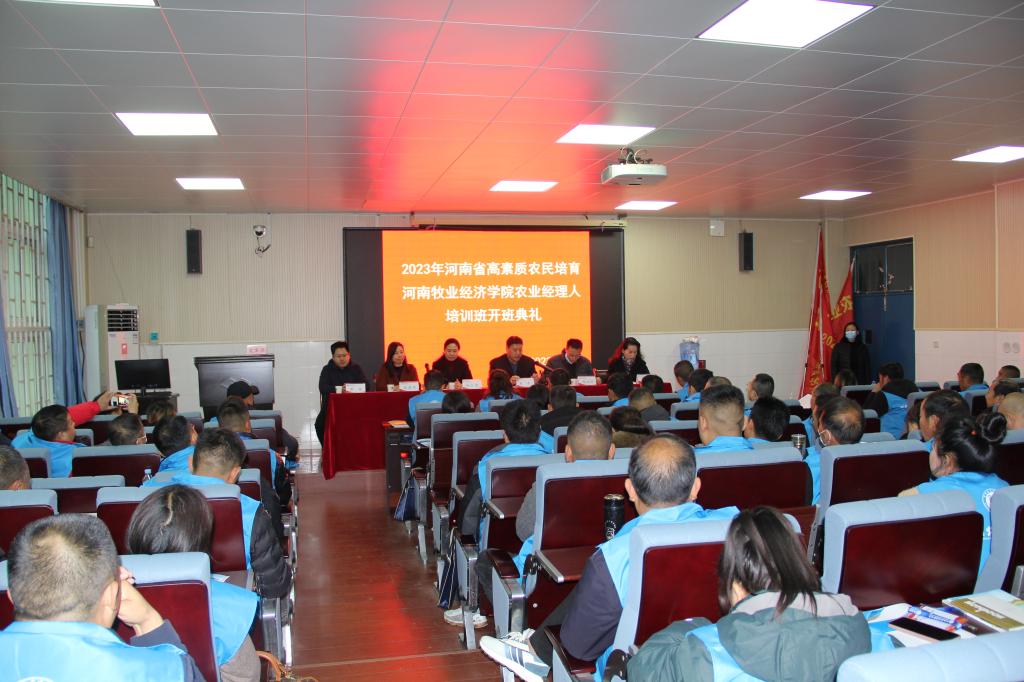 2023年11月11日上午,pg游戏官网承办的河南省2023年高素质农民培育农业经理人(种植)培训班开班典礼在英才校区综合实验楼W102报告厅隆重举行。副校长杨志清出席开班典礼并致辞,pg游戏电子模拟器党总支书记张君华、院长宋平、副院长周延州等相关同志及接受培训的100余名学员参加了开班典礼。开班典礼由pg游戏电子模拟器院长宋平主持。
