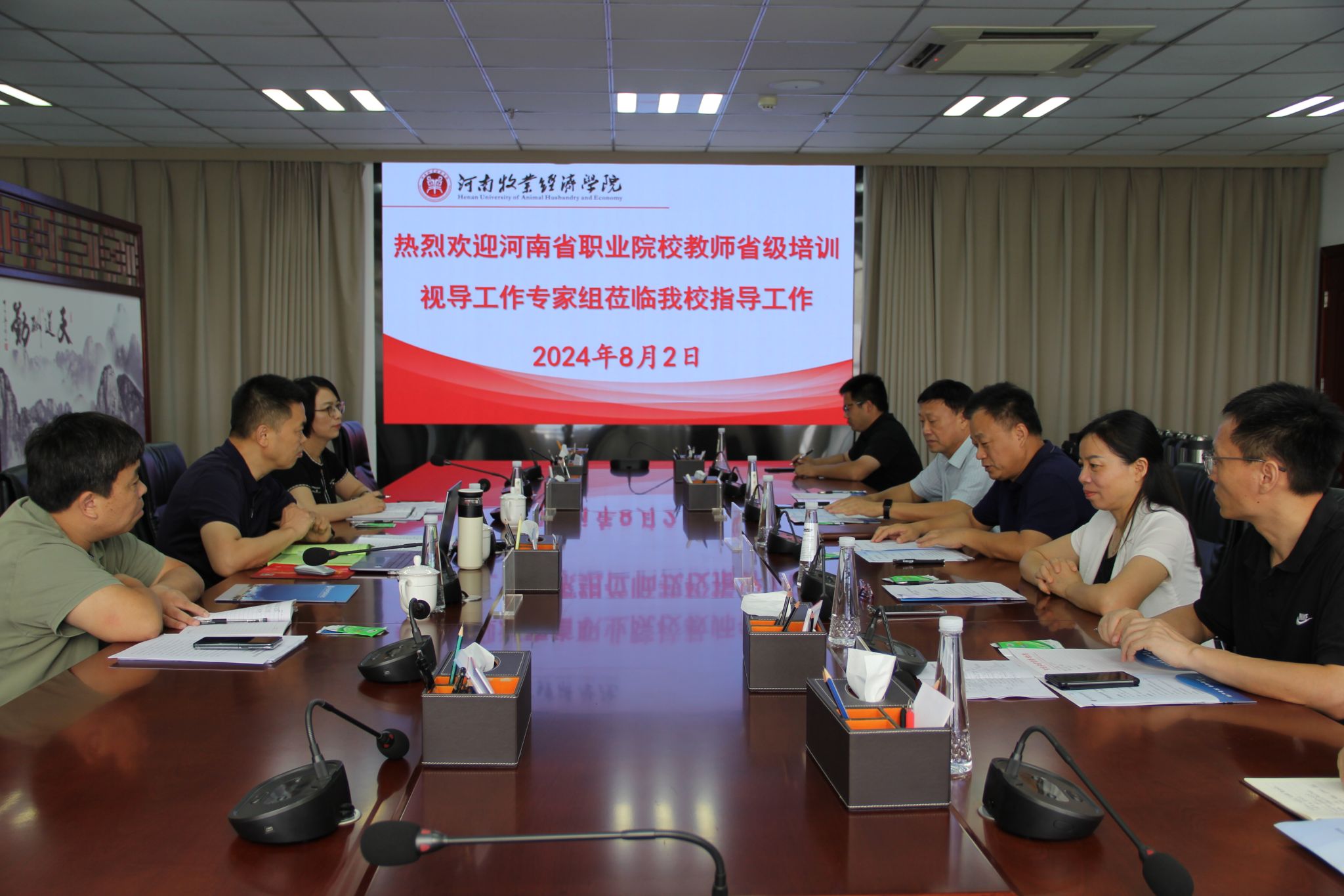 8月2日上午,河南省职业院校“双师型”教师省级培训专项视导组一行3人莅临pg游戏官网双师培训基地进行视导。专家组由河南经贸职业学院教学副校长康坤、河南农业职业学院教务处长智丽红、郑州工业安全职业学院招生就业处副处长王伟组成。河南牧业经学院副校长席磊出席视导会并致辞,pg游戏电子模拟器党总支书记张君华、院长宋平、副院长周延州及培训管理人员参加会议。会议在龙子湖校区图书馆841举行,pg游戏电子模拟器党总支书记张君华主持汇报会。